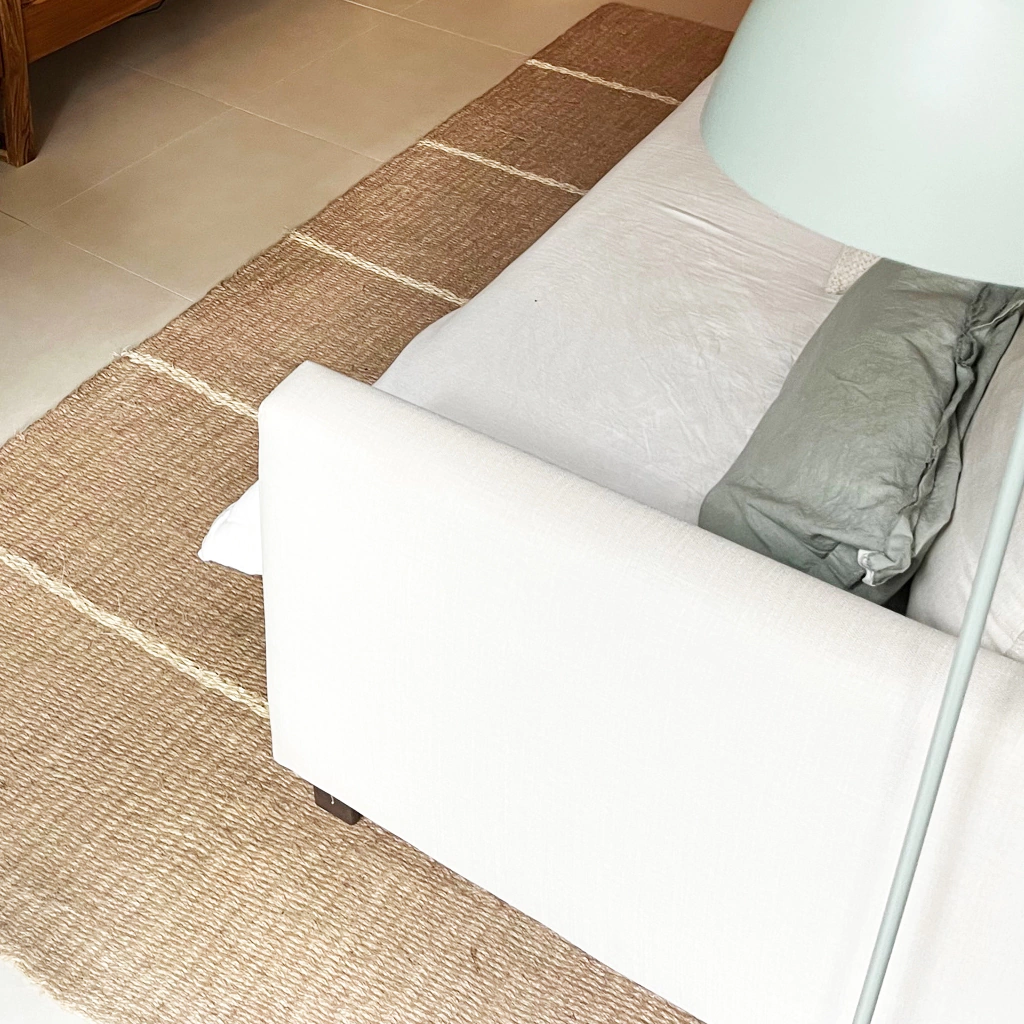Alfombras tejidas en telar a mano. Pueden realizarse en lana, sisal o yute. Incluye base de goma antideslizante.