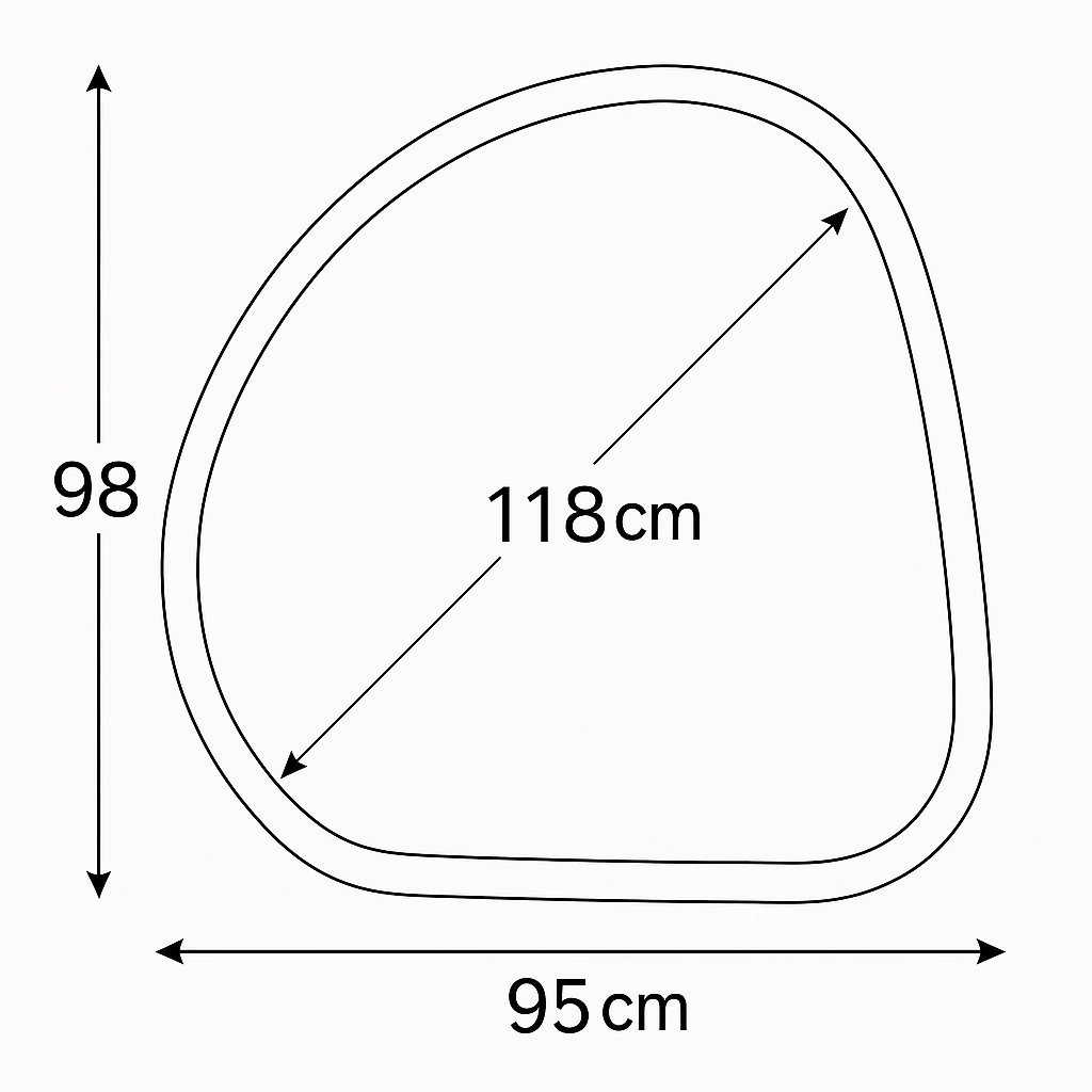 Espejo realizado de manera artesanal. Con forma organica y marco de madera petiribi.