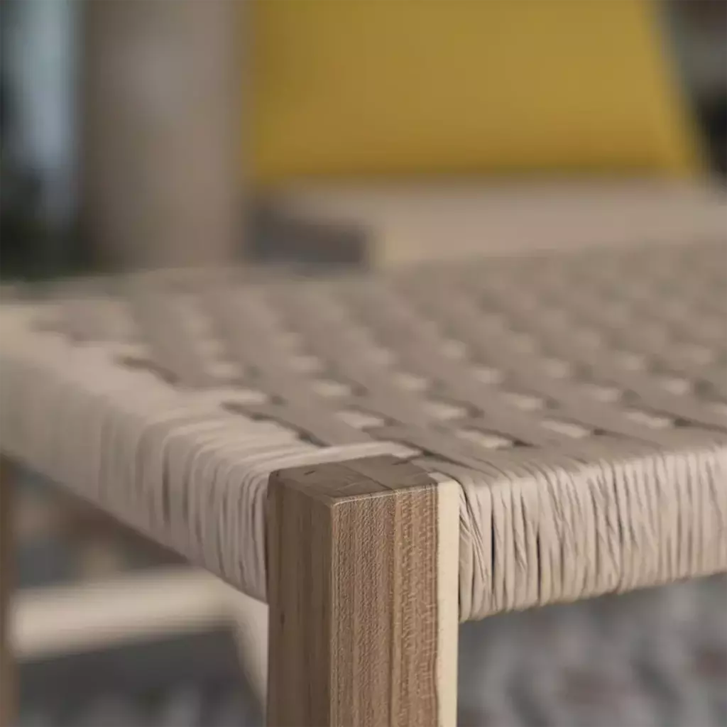 Matera con estructura realizada en madera maciza de petiribi. Se pueden tejer en papel kraft o con soga nautica.