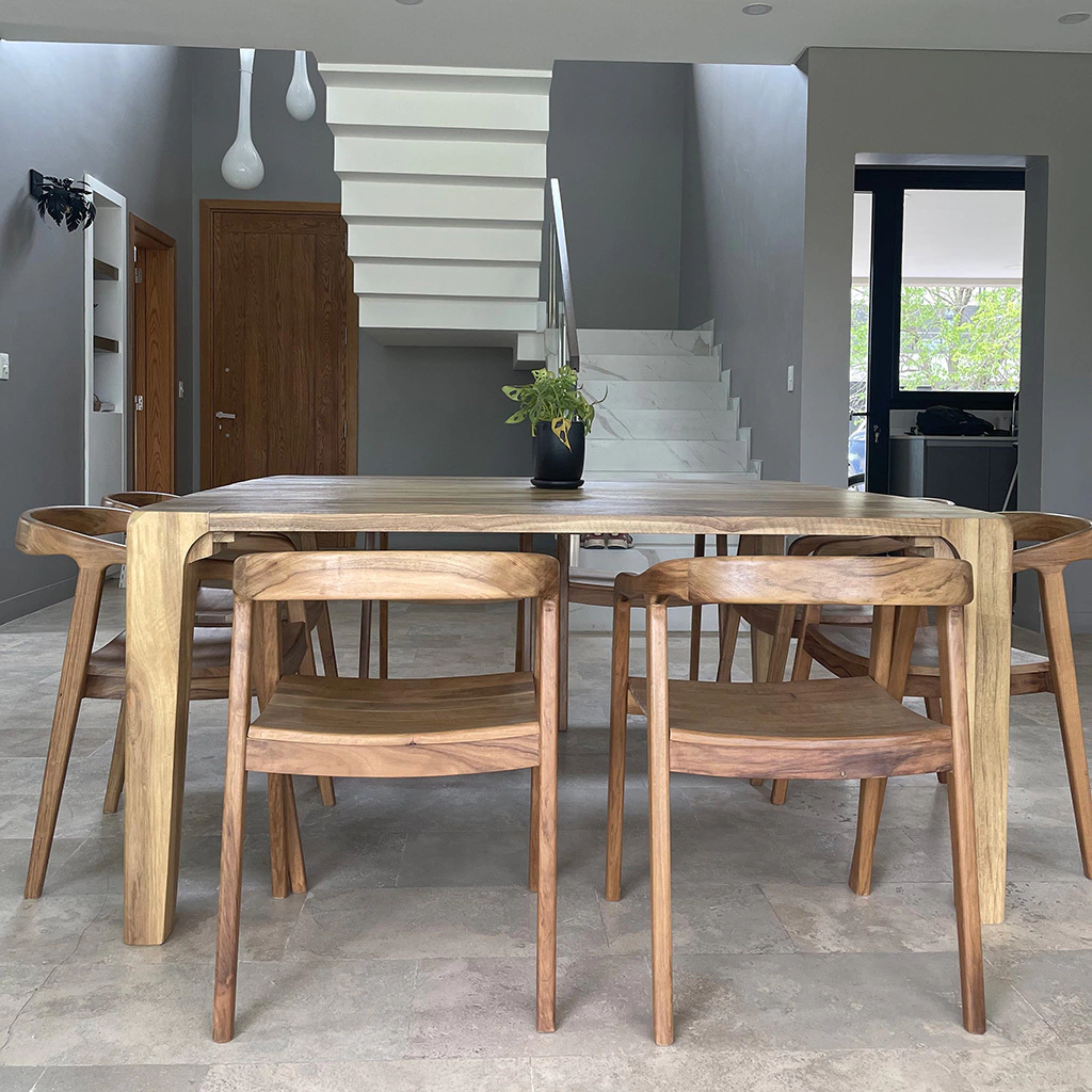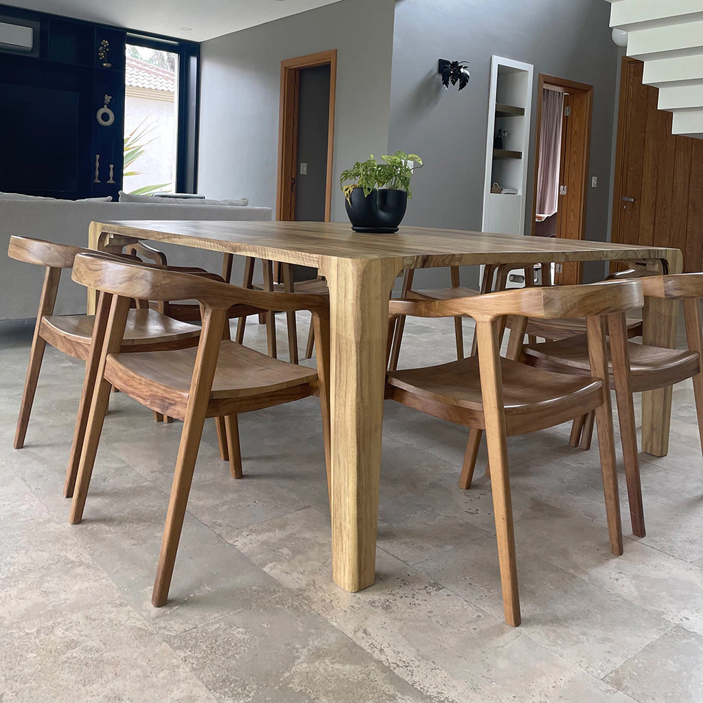 Mesa de diseño realizada 100% en madera maciza de petiribi con bordes redondeados.