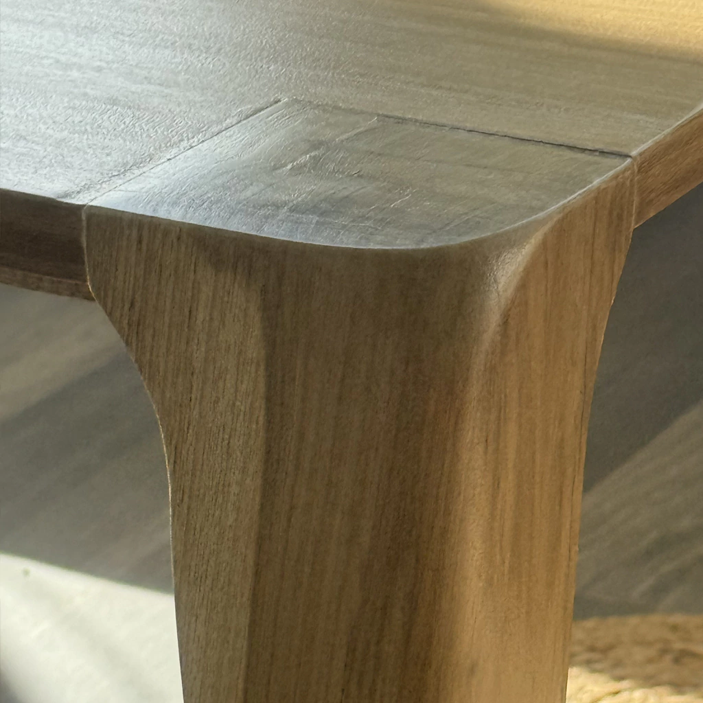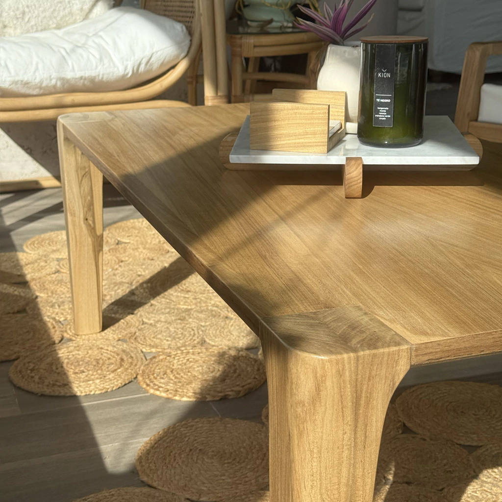 Mesa de diseño realizada 100% en madera petiribi con bordes redondeados.