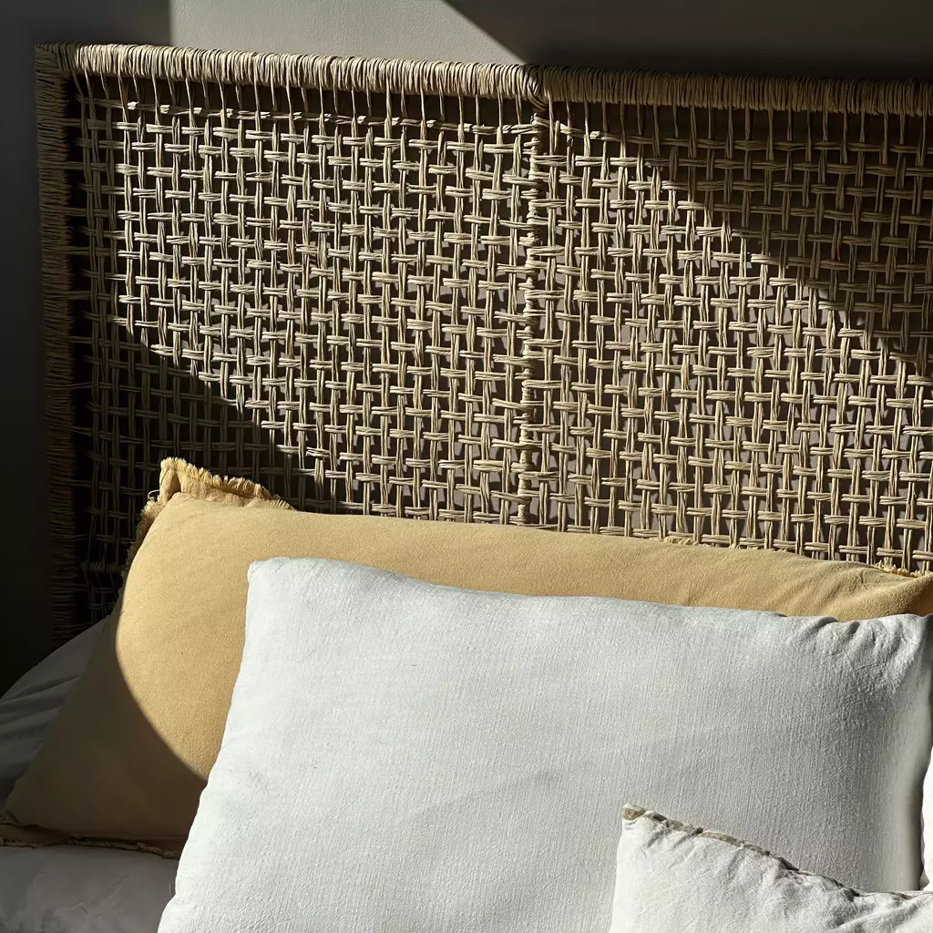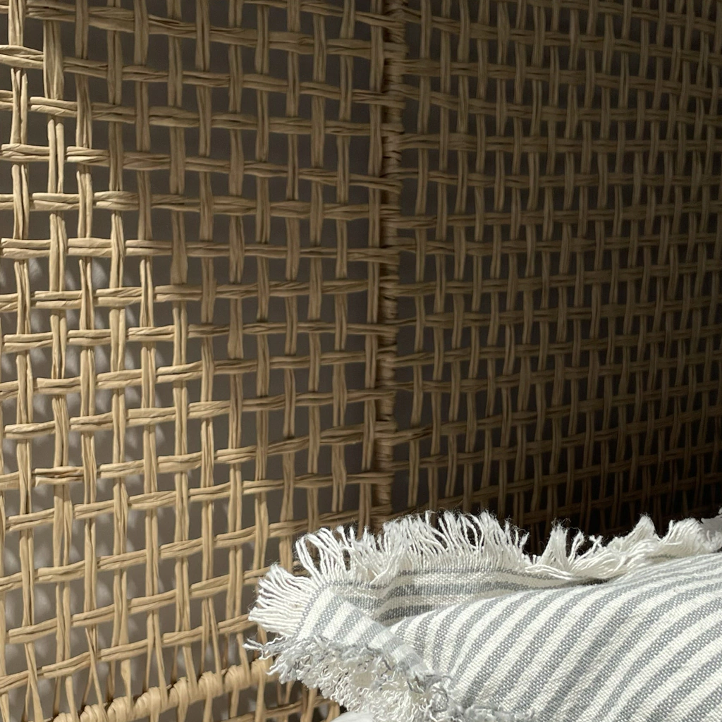 Respaldo realizado con estructura de hierro y tejido de papel kraft color natural.